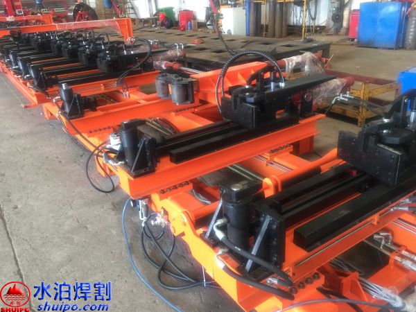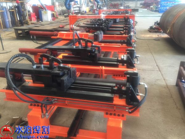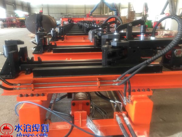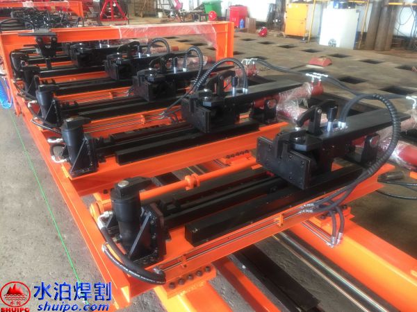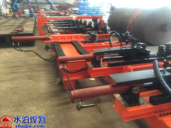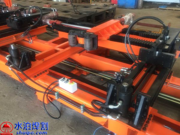 液壓縱梁點固工裝可同時加工兩件大梁,兩側(cè)互不干擾,適用于多種類型,鵝頸處可直接壓彎成型增加效率,翼板、腹板可隨意調(diào)節(jié)適用更多大梁,上下翼板采用旋轉(zhuǎn)油缸壓緊可防止翼板焊接時變形,腹板配有壓緊機(jī)構(gòu),工裝配有大梁升降輸送滾輪方便工件工位之間的輸送。